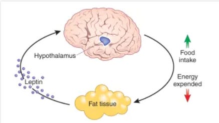 The more adipose tissue (fat) you have, the more dysfunctional your leptin and ghrelin signaling become. Humans are one of the few animals that can consistently override hunger signals which leads to a dysregulated balance of leptin, ghrelin, and decreases leptin sensitivity.